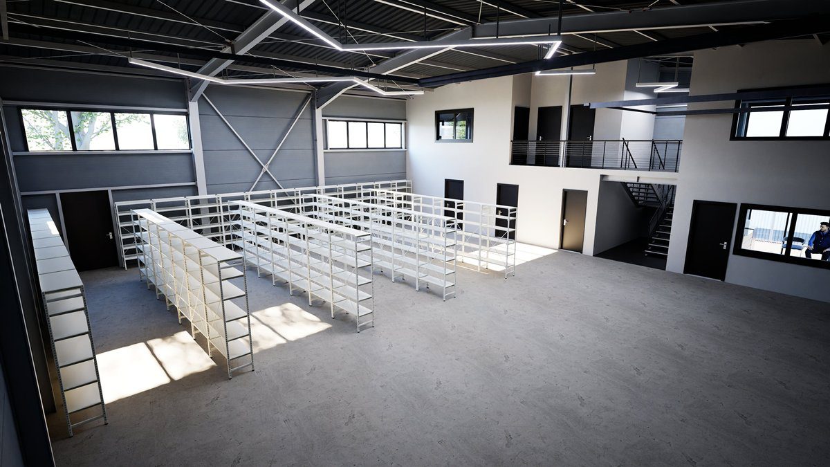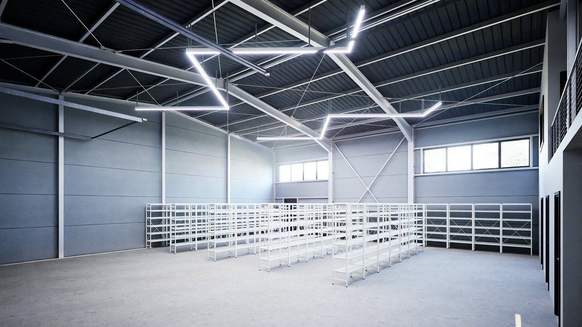 Spațiile interioare au înălțime suficientă pentru depozitarea pe verticală, fiind potrivite pentru rafturi metalice înalte sau echipamente de manipulare. Ferestrele și ușile industriale cu geamuri mari contribuie la iluminatul natural eficient, reducând semnificativ necesarul de iluminat artificial.